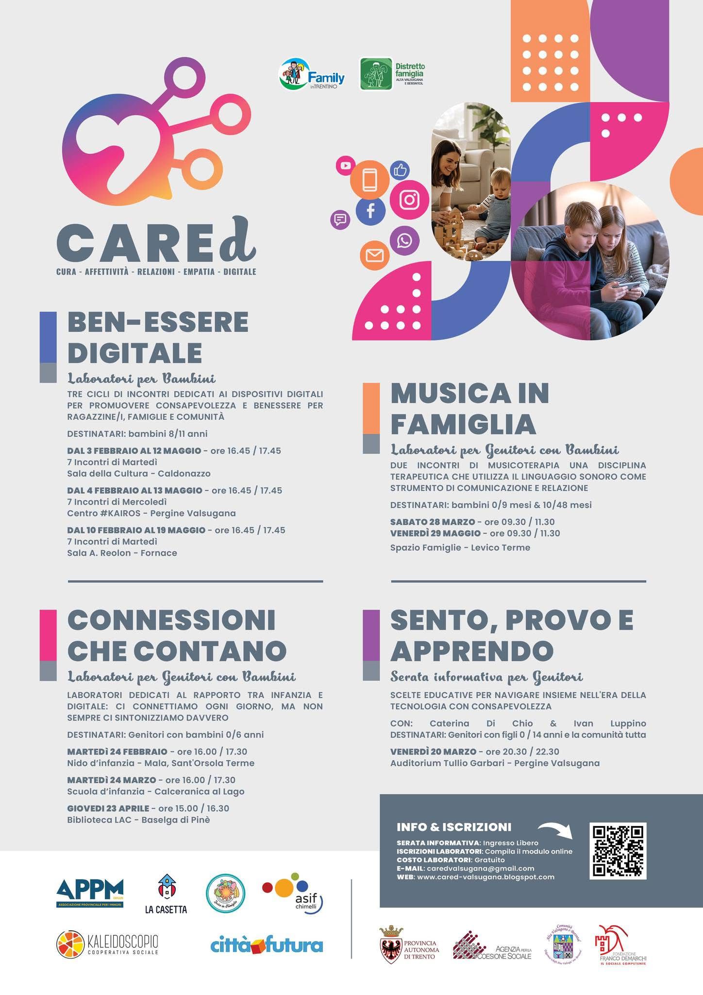 Attraverso momenti di condivisione, giochi didattici e sfide i partecipanti condividono esperienze, aspettative e desideri sulle modalità con cui loro stessi, i pari e gli adulti di riferimento utilizzano i dispositivi digitali, facendo emergere pro e contro e l’importanza di definire insieme abitudini e regole per il benessere digitale.Vedasi locandina allegata per date, orari, luoghi degli incontri e iscrizioni.Iscrizione obbligatoria con un numero massimo di partecipanti.